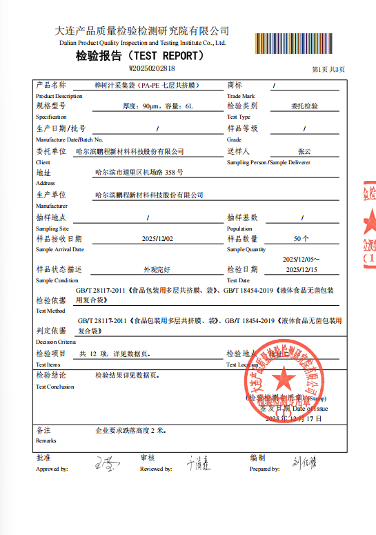 一、我司七層共擠結構樺樹汁采集袋的性能優勢 1.相較于膠黏劑復合工藝生產的PA/PE復合膜,采用了七層共擠技術生產的PA-PE共擠膜,其尼龍層和聚乙烯層間通過熱熔技術融合成為一個整體,其層間不會出現分離的情況,具有更強的柔韌性、更高的透明度。 2.對嚴寒環境具有極強的適應性,樺樹汁采集通常在北方地區早春,晝夜溫差大,夜間溫度通常在零度以下,通過七層共擠共擠工藝生產的采集袋,因其極佳的柔韌性,能夠更好的適應低溫環境,能夠有效避免因材料脆化導致的破袋損失。 3.具有極強的抗跌落和抗擠壓破袋性能,樺樹汁的采集點往往處于林區中,道路崎嶇,顛簸不平,采集工人在收集取袋過程中難免會導致袋跌落,我司的共擠結構的采集袋因其有極佳的柔韌性和延展性,能夠極大的降低袋跌落后的破袋率,也能保證采集袋在運輸過程中不會因顛簸、擠壓和摩擦導致破袋。 4.具有高效的掛袋、取袋和換袋效率,我司的共擠結構樺樹汁采集袋和配套的樺樹汁采集導流