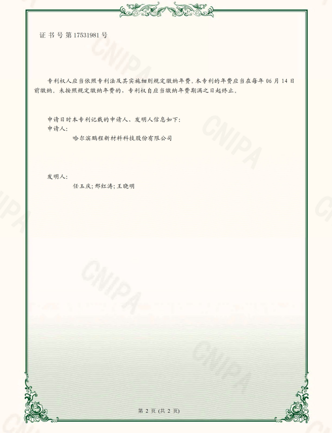 專利 權 人:哈爾濱鵬程新材料科技股份有限公司